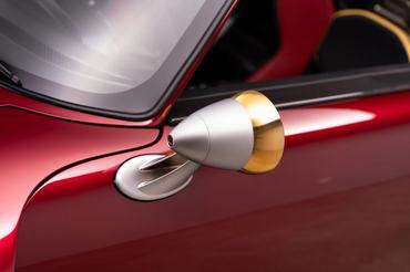 Éppen ezért az autó fényezésénél a True Candy Red árnyalat mellett több helyen is felbukkan a fekete és az arany. Ráadásul nemcsak arany festékről van szó, hanem a legtöbb helyen 24 karátos arany bevonatot alkalmaztak. Ez bár elsőre túlzónak tűnhet, valójában az utolsó Speedsterbe tényleg mindent bele akart adni a Gunther Werks. Éppen ezért nem érezték túlzónak a spéci hátsó szárnyat sem, ahogy elfért a hatalmas karbon diffúzor és az egyedi első és hátsó lökhárítók is. És ha már karbon: a karosszéria jelentős része ebből az anyagból készült, így az autó súlya nem haladja meg az 1,2 tonnát.
