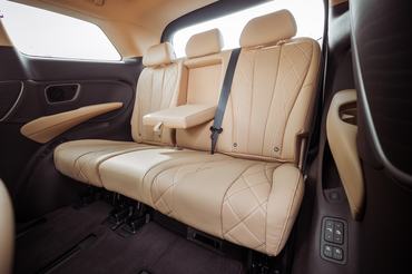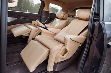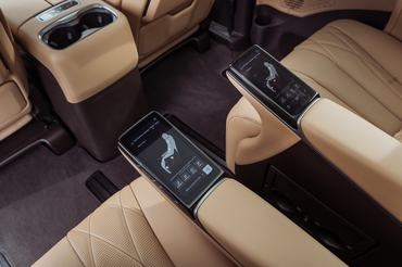 A D9 esetében a luxus leginkább a középső üléssorban jelentkezik, ahol két, egymástól független fotelt alakítottak ki. Ezek 14 különböző irányba elektromosan állíthatók, természetesen rendelkeznek fűtés és szellőztetés funkciókkal, illetve 16 pontos masszázsrendszer dolgozik bennük. Szükség esetén egészen hátra lehet őket dönteni, az utasok úgy pihenhetnek bennük, mintha rendkívül kényelmes napágyak lennének. De akkor sem fognak unatkozni, ha nem aludnának a középső sorban: ülésenként egy-egy 12,8 colos kijelzőt is kaptak, illetve a karfákba beépítettek egy-egy LCD kijelzőt, ami a különböző funkciók elérésében segédkezik. Emellett az elöl utazókkal együtt kapnak egy-egy 50 W-os indukciós töltőpadot telefonoknak, illetve van az autóban további öt USB C port, illetve egy USB A is a régebbi készülékeknek és eszközöknek.