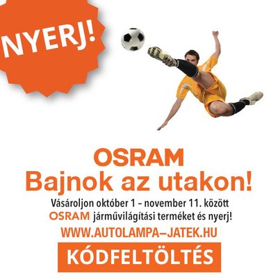 Ha október 1. és november 11. között vásárol Osram járműizzót vagy szerelőlámpát, vegyen részt a Bajnok az utakon! nyereményjátékban, melyben akár kétfős utazást is nyerhet a La Liga bajnoki mérkőzésre. További részletek az autolampa-jatek.hu oldalon.