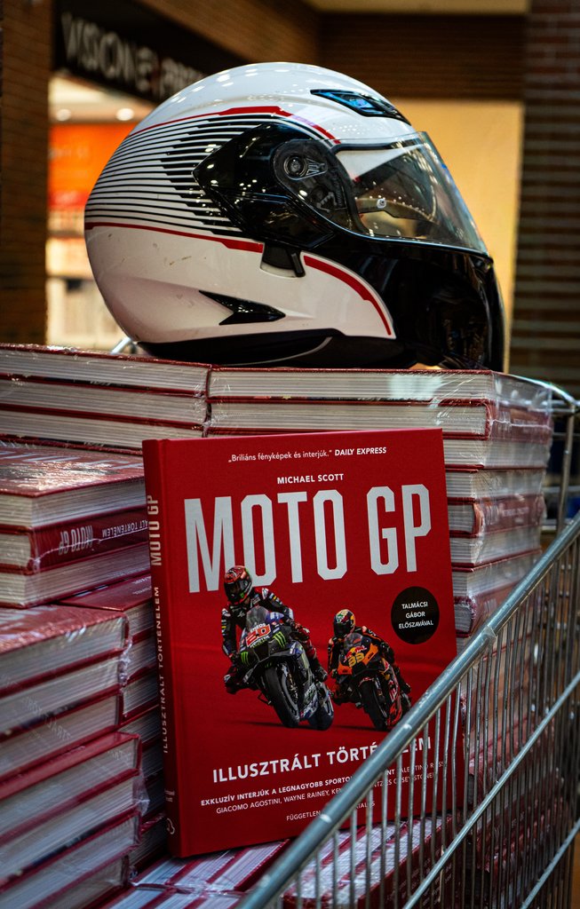 A Magyar Nagydíjat, mint történelmi pillanatot először magyar nyelven megjelent könyvünk is ünnepli. MotoGP Illusztrált Történelem című művet Michael Scott, a több mint 40 éve minden motoros GP-ről tudósító brit motoros újságíró jegyzi. A SuperBike Magazine és Road Racer lapok korábbi szerkesztője sorra veszi az egyes korszakokat és egyben felöleli a második világháború utáni több mint hetvenéves gyorsasági versenymotorozás teljes históriáját, felvonultatva a legnagyobb neveket, pályákat, eseményeket, valamint a biztonsági és műszaki fejlődés hihetetlen léptékét. Bemutatja hogyan jutottunk a pedálos motoroktól és a betolásos rajttól a napjainkban több mint 320 km/órával is száguldó cirkuszig; melyik gyártó dominált (Norton, NSU, MV Agusta, Yamaha, Honda) és miért; kik voltak a sportág bajnokai, akikkel exkluzív interjúkat olvashatunk (például Geoff Duke, Giacomo Agostini, Kenny Roberts, Mick Doohan, Valentino Rossi); a gumik és beállításuk fejlődését futamról futamra; milyen biztonsági fejlesztéseket vezettek be az évek során az egyes versenyeken; megtudhatjuk hogyan emelkedett ki a kétütemű belső égésű motor, majd tért vissza a négyütemű motorok uralma. Számtalan anekdota és érdekesség olvasható páraknak a Forma 1 világából is ismert John Surtees elvein, Giacomo Agostini eleganciáján, Wayne Rainey „amerikai porfelhőjén”, Mick Doohan uralmán, Casey Stoner páratlan tehetségén, a Yamaha–Honda örök rivalizálásán és Rossi–Lorenzo–Márquez párharcán keresztül, amikből végül összeáll a teljes Gyorsasági Motoros Világbajnokság történelme.