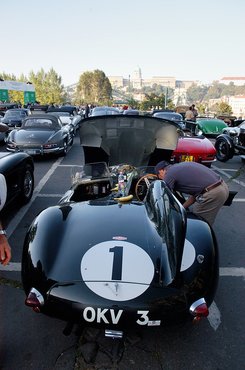 A GTO orrának vonalában pedig a világ legrémisztőbb versenyautója, egy méregzöld, sárga orrú Jaguar D-Type. Az autó, ami képről nem érthető meg. Hiszen miatányi, könnyeden hullámzó fémkapszula az egész. A sötétben közelről tűnik csak elő hatalmas cápauszonya, ami egyetlen cél érdekében épült, hogy megtartsa az autót a Mulsanne-egyenesben.