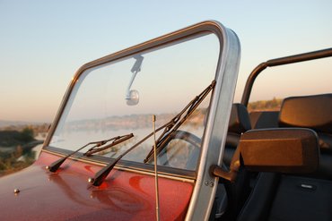 És az Apal még olyan dolgokat is megoldott, mint az ablakspricni. A régi Bogárnál a pótkerék levegője nyomja a vizet a szélvédőre. A Buggynak nincs pótkereke, ezért benzinkútnál felpumpálható, külön kis tartálya van az ülése alatt (közvetlenül a széria, összecsukható gyalogsági ásó mögött), abból jön a lé. Persze rázós úton remeg a kasznija, hát hogyne remegne, hiszen fölül hiányzik a fél autó. De a vibrálás nem rosszabb, mint a tipikus korabeli gyári kabrióknál, az akkori Alfa Spidernél, az MGB-nél.