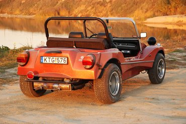 Persze az Apal a jobbfajta buggyk közül való, akár a stílusát, akár a használhatóságát nézem. A VW 1600 TL-ből jöttek az órák, a kaszni keményen, zörejmentesen rajta van a központi csöves alvázon, bár két testes férfinak feltűnik a szokásosnál nagyobb közelség az első ülésen. Sebaj, némi összemelegedés után már ez sem zavaró.