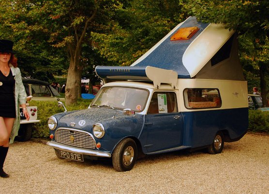 Az első, ami feltűnt, egy MG-féle Mini volt. Vagy hat méter hosszan terült el a tájban, kék vinyl-teteje egy Kusturica-film menyegzőjén szerepelhetett volna ünnepi asztalként. Na ja, Miniből nem nehéz limót készíteni, hiszen a mechanika eleje és a hátulja külön segédkereten van, közte csak némi pléhlemezt kell betoldani. Meg adni neki némi erősítést. De azért látni egy ilyet, meg gondolatban elkészíteni egész más.