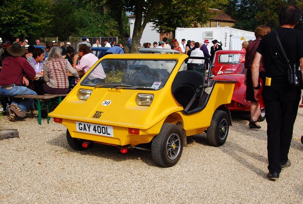 És mint közelebbi inspekcióra kiderült: a sárga, Piko-holdjárművekhez hasonló izé is Mini, úgy hívják: TiCi. 1972-ben készítettek belőle negyven darabot, a gyártásában valahogy Stirling Moss is benne volt. No, nem hinném, hogy a futószalagon. Persze azt se, hogy ehhez lett volna futószalag egyáltalán. Mindenesetre 225 centi hosszú. Ekkor esett le a tantusz, hogy azok a pici, kretén izék, amin valamennyin tízcolos kerék van – mind valamilyen Mini. Legalább egy óra végigjárni, inkább léptem, hívott a pálya.