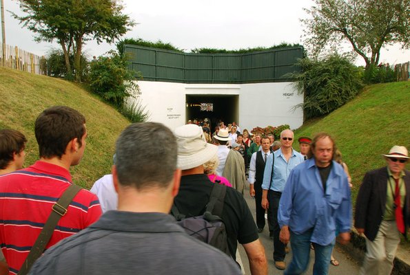 Az alagutat úgy kell elképzelni, hogy éppen kétszer két sornyi ember fér át rajta. Öt már nem, ahhoz keskeny. Négy és fél sem. Viszont a pálya széles, tehát az alagút elég hosszú. És ezen a három napon összesen 134 ezer látogató járta meg a Goodwood Revivalt. Amikor pedig elkezdődik egy futam, a látogatók fele azonnal belülre akar menni, hogy megnézze a boxutcát, a másik fele azonnal kifelé akar menni, hogy lássa, hogy mennek. Vagy mittomén, mindenesetre ilyen dugót emberből még nem láttam. Tolongani nem illik, Angliában vagyunk, egyébként is, másnak legalább olyan sürgős átérni, mint nekem.