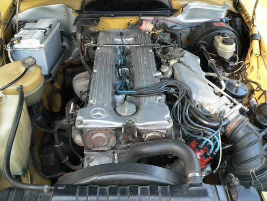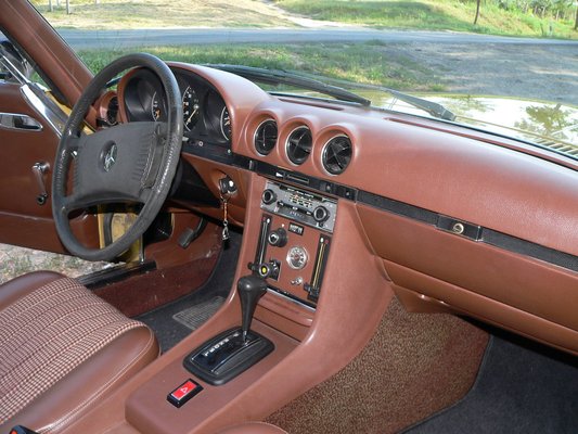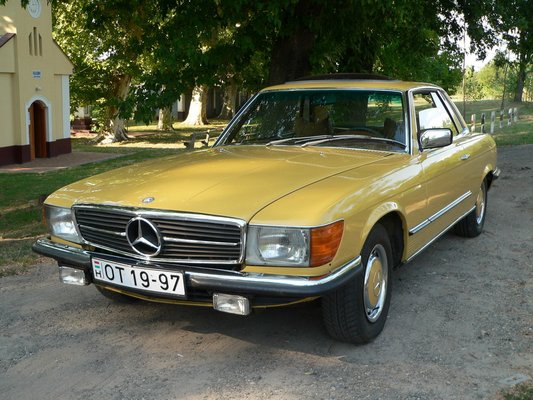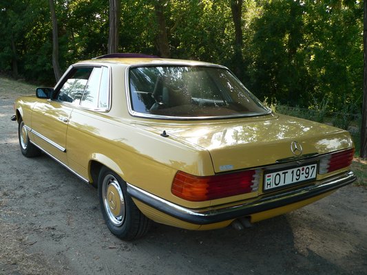 Ennyi a meghülyülésem története, és akkor ismerkedjünk meg dióhéjban magával a típussal is. A Mercedes-Benz R107 1971-ben debütált, és 1989-ig maradt a kínálatban. A modellcsaládba tartozó SL-eket hardtop és kabriolet kivitelben készítették, és különösen az USÁ-ban voltak keresettek, természetesen a 350-es és 450-es, V8-as benzinmotorral. Az SLC kupé (C107) az SL közeli rokona, lényegében annak közel negyven centivel megnyújtott változata. A hosszméret és a tengelytáv növelésére azért volt szükség, hogy az SL szigorúan kétszemélyes utasfülkéjéből négy személy kényelmes utazását lehetővé tevő, tágabb kabint készíthessenek. Az SL-ek és SLC-k lényegében a korabeli S-osztály (W116) stíluselemeit viselő karosszéria alatt nagyobb motorokkal megbolondított W114-esek voltak. Az SLC váltotta a kínálatban a 280/300 SC kupékat. A 2.8-as, soros, hathengeres benzinmotort 1974-ben vették fel a kínálatba, az első olajválság hatására. Az SLC-ket 1981-ben az 500 SEC kupék (W126) váltották, az SL-ek továbbra is gyártásban maradtak. Az SLC-ket úgy reklámozták, hogy egy sportkocsi dinamizmusával és egy limuzin által nyújtott kényelemben lehet utazni bennük, hosszú távon is. Tíz év alatt összesen 62 888 db SLC-t gyártottak és értékesítettek, a maguk idején ezek voltak a Mercedes-Benz legdrágább modelljei.