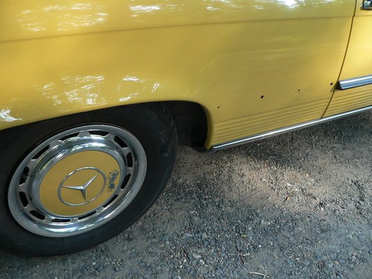 A Mercedesnél már a 70-es években is kedvére válogathatott a megrendelő a különféle extrák között. Így olyan egészen fura kombinációk is létrejöttek, mint a Sárga, amiben alig van valami kényeztető cucc, viszont automataváltós. A kézenfekvő felszerelések közül nincs benne: elektromos ablakemelő, jobb oldali tükör, hátsó biztonsági öv. Arról nem is beszélve, hogy teljesen hiányoznak az olyan nem kézenfekvő extrák, mint a könnyűfém felnik, a légrugós szintszabályozás, a bőrkárpitozás, az ülésfűtés, a fényszórómosó- és törlő berendezés, a műszerfal faburkolata, vagy az irdatlan méretű kézibeszélővel ellátott korabeli rádiótelefon, amivel a német posta hálózatára lehetett rákapcsolódni. Igaz, hogy van viszont elektromos tolótető, ködlámpa, sztereó rádiósmagnó, motoros antenna, központi zár – milyen kár, hogy ezek egy része jelenleg nem működik...