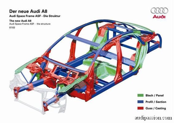 1994: ASF (Audi Space Frame) első teljes alumínium karosszériaváz