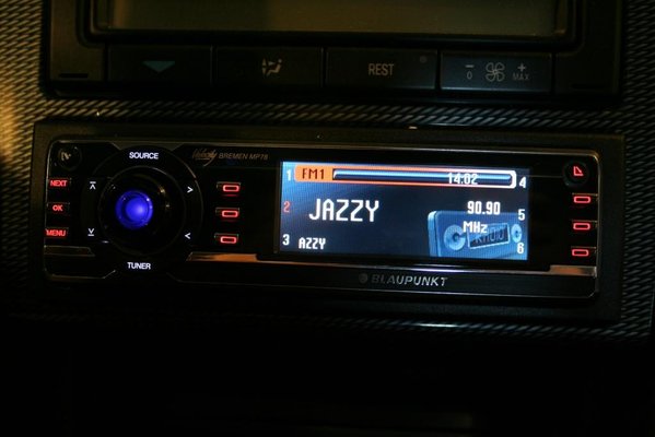 A CD-játszó motorosan lenyíló előlapja nem lassú, de van sok halkabb. Az előlap dőlésszöge állítható, ami klassz, de csak ott van értelme, ahol függőleges a középkonzol, és az aljára kell beépíteni. Kényelmi funkció, végül is megér egy piros pontot. A lemezeket – eredetit, írottat, tökmindegy neki – elég gyorsan és hangtalanul olvassa be. A CD-Text funkciók mennek, mindent kiír a képernyőre, ha talál a lemezen infót. Ügyes orosz mérnökök megoldották azt is, hogy minden műsorforrás lejátszásánál eltérő háttér legyen a kijelzőn, ráadásul a műsorforrás stilizált képe is megjelenik, igazi műmájer funkció. (Olyan azért ritkán van, hogy nem tudom, épp mit hallgatok.) A lejátszó természetesen olvassa az mp3 és wma formátumokat, ez ebben a kategóriában már nem szám, de azért említsük meg.