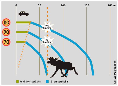 A sebesség és a mozgási energia problematikáját nehezen veszi be az ember lineáris összefüggésekhez szokott gyomra. Mert ha mondjuk egy helyett két almát (sikeresebbek egy helyett két plazmatévét) veszünk a piacon, akkor az nyilvánvalóan kétszer annyiba fog kerülni. Ezt szoktuk meg. A plazmatévénél maradva viszont ha a nyolcvancentis helyett száztíz centiset veszünk, az ugyan alig nagyobb, mégis simán kerülhet kétszer annyiba. Ez a közel négyzetes összefüggés az, ami jól példázza a sebesség és a fékút viszonyát. Nyolcvan helyett száztízzel haladva körülbelül duplájára nő a fékút, s ez utóbbi esetben százas tempóval kaszáljuk el azt a jávorszarvast/őzet/kerékpárost, amely előtt nyolcvanról lassítva talán épp meg tudtunk volna állni.