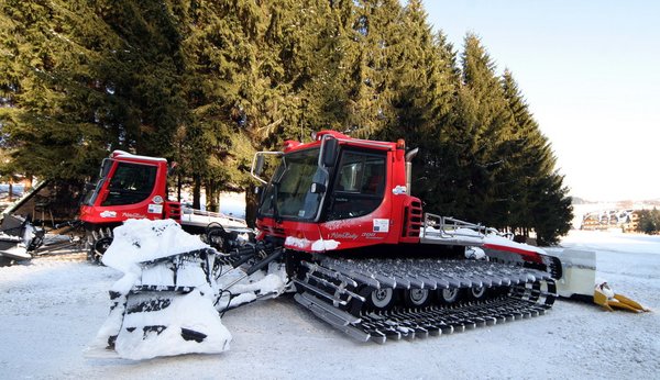 Másnap, a síóvodai foglalkozás után megközelítettünk két parkoló ratrakot, hogy elmélyedhessünk a részletekben. Elmélyülésünket csak a szánhúzó kutyák folyamatos ugatása zavarta, a ratrakok mellett van ugyanis a kennel. Mivel a kutya nem géperejű jármű, rájuk most több szót nem vesztegetünk. A Park Snow által üzemeltetett Donovaly-i sípályákon forgolódó hótaposókat a PistenBully gyártja, egy német cég, amely a Kässbohrer egyik leányvállalata. Hogy érezzük a technológia értékét: egy közepes teljesítményű ratrak kábé hatvanmillió forintba kerül. A magas árban persze nyilván szerepe van a viszonylag kis szériaszámoknak is.
