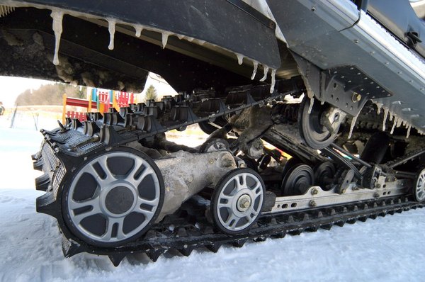 Hagyjuk most a történetből levonható, kézenfekvő tanulságot, nézzük meg inkább közelebbről a Bearcat 660-ast. A benzinmotorja, mint a típusszám is mutatja, 660 köbcentis, négyütemű, háromhengeres, injektoros, elektromos önindítós. A műanyag lánctalpba fém karmantyúkat applikáltak, ezekkel jégen is jól kapaszkodik. Mind a hátsó, mind pedig az első, sítalpakra támaszkodó futómű rugózott, a Widetrack elnevezés arra utal, hogy Botond járműve a széles nyomtávú, nagyon stabil változat. Az első idomba szerelt lámpák elegendő fényt adnak, a hátsó lámpatestben természetesen féklámpa is van. A műszerfal két klasszikus körműszert tartalmaz, a bal oldali a fordulatszámot, a jobb oldali a sebességet méri. A kilencliteres tankon egy külön kis műszer mutatja a benzinszintet.