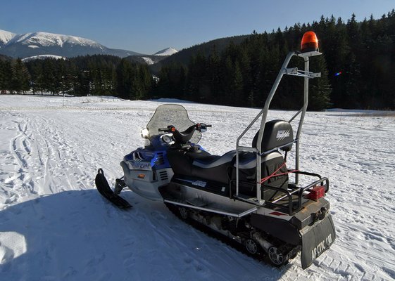 Mire Botondhoz, a Patty Ski tulajdonosához értem, erősen alkonyodott, úgyhogy azonnal belecsaptunk a fagyott lecsóba. Adott egy babakék síkesztyűt, mert azt elfelejtettem hozni, nyakamba akasztottam a fotóstáskát, majd felpattantunk a Bearcat 660-as snowscooterre és nekiszaladtunk az 1361 méter magas Nová Holának. A tizedik másodpercben már nagyon meg voltam lepve. Nem számítottam rá, hogy egy ilyen Bearcat gyorsul, mint állat. Húsz másodperc múlva még jobban meglepődtem, mert nem is sejtettem, hogy milyen fürgén tud menni. Ötven másodpercnél ismét elcsodálkoztam, hogy milyen meredek parton fel tud kapaszkodni.