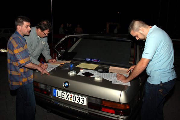 A péntek éjféli rajtnál azonban akadtak olyanok is, akik az ilyesmit sosem gyakorolták. Mint pl. mi ketten. Hosszú barátom adta az autót a versenyhez, a már jól ismert E28-as BMW-t, jómagam pedig a navigátor hálátlan szerepét vállaltam.