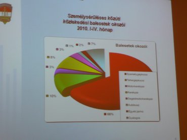 A statisztikus munkaidejébe az is belefér, hogy előállítsa a személysérüléses balesetek okozóinak százalékos megoszlását, járművek szerint. Személygépkocsik 66%, tehergépkocsik 10%, kerékpár 8%, segédmotor 3%, autóbusz 1%, satöbbi, de a felsorolt járműkategóriák arányának ismerete nélkül ennek a diagramnak nem sok értelme van. Ahogy szerintem elég szomorúak a legutóbbi nagy közlekedésbiztonsági akció adatai. Ebben biztonsági öv, bukósisak és gyermekülés hiánya miatt 282-szer büntettek. Mobiltelefonálás miatt 16-szor. 228 autóst megállni tilosban történő megálláson kaptak. És vajon hányszor büntettek gyorshajtás miatt? 4054-szer. Ugye?