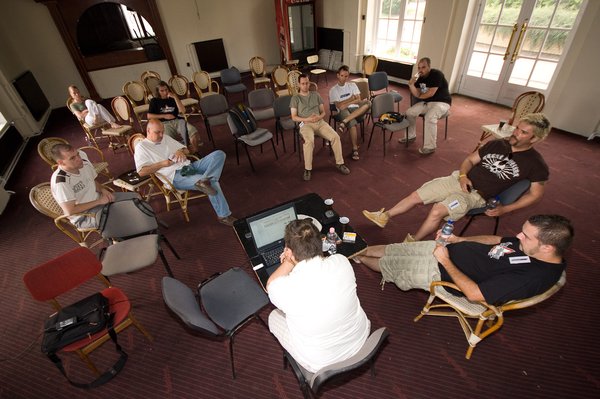 A tárgyalóterem, mondjuk, nem okozott csalódást, ez pontosan olyan volt, mint amilyennek a Vidámparkot elképzeltem. Szedett-vedett székek, bagószag, asztal nincs, csak egy düledező, pici tákolmány, viszont kaptunk kávét, vizet, az jó volt. Összesen kábé ennyi maradt meg negatív élményként, de hát a hétfői értekezlet amúgy sem tinilányálom. Utána aztán át kellett rendeznünk a fejünkben a képet erről a szocialista nagyvállalatnak hitt intézményről.