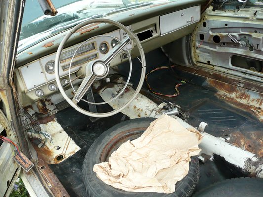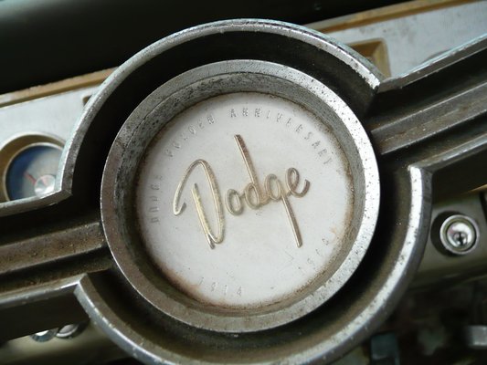 Viszont ez a 64-es Dodge Polara annál jobban tetszik. már pont karcolja a személyes álomautó-korszakomat, ami 1964-67-ig terjed. Patkányosan néz ki, de teljesen kárpitozott, és a motorja tökéletes. Egyébként a külseje is perfekt – nagy tulokságnak tartom, hogy ilyen szépen napszítta, helyenként lemezre kopott, de rohadásmentes autók nem mehetnek át a veteránvizsgán. Nekem maga a forma is szép, kicsit ortopéd, de ütős, imádom ezt a 64 körüli, háromszögletű hátsó tetőoszlopfazont. A kormányban van még egy Dodge Golden Anniversary 1914-1964 felirat is – a Dogde első 50 éve valószínűleg dicsőségesebb, mint a második golden anniversery lesz.