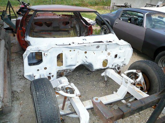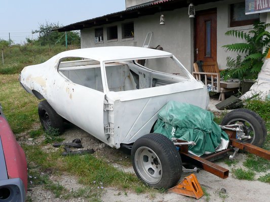 A fehér, felismerhetetlen kísértet egy 1970-es Buick. Érdekessége, hogy annak idején kétmillió forintot költött rá a tulajdonos, így többek között cinkfürdőt is kapott. Ebben is kettős keresztlengőkar van elöl, de ez egy eredeti, komplett Corvette futómű. És egy viszonylag új, ötsebességes versenyváltó. Természetesen szétszedték, hogy vajon mi lehet benne, de azt mondják, gyakorlatilag ugyanolyan, mint a négyfokozatú, plusz egy ötössel. Nagyjából olyan lesz a végeredmény, mint egy NASCAR-versenyautó. Nem lesz oldalablak, két versenyülés, becsövezve, billenőkapcsolók, ilyesmi. A motor se kap klasszikus gumi tartóbakokat, hanem közvetlenül fémre csavarozva rázza majd a kasztnit.
