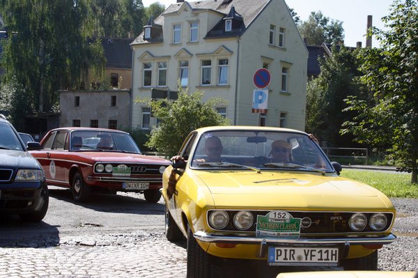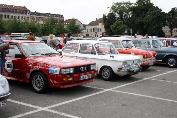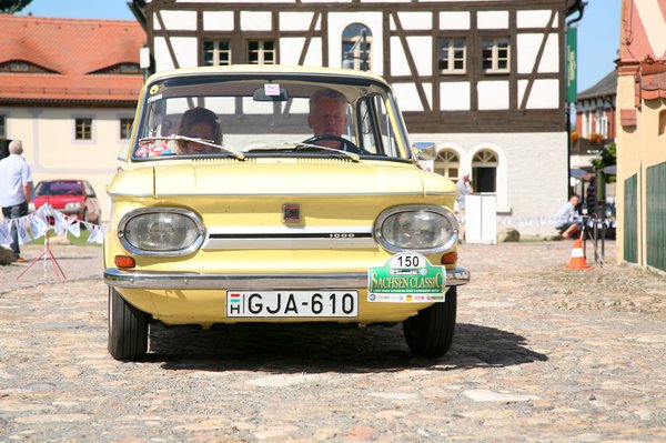 Másnap a párás, esős reggelen a motor könnyen beröffen, hosszú melegítés, itt hideg van. Rajtunk pulóver és zárt cipő, irány a 200 kilométerre lévő Zwickau, a Sachsen Classic rajthelye. Mire begurulunk a Népek barátsága terére, már melegünk van, kibújt a nap. Megkeressük a szállodát, kipakolunk. Nusit le kell mosni. Másfél órán át küzdök vele, a végén ragyog a kispajtás. Felragasztom a 150-es rajtszámot. Mögöttünk még majdnem ötven autóból áll a mezőny. Hihetetlen számok.