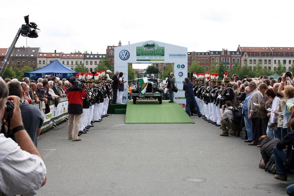 Drezdához közeledve sűrűsödött a forgalom, sokat araszoltunk. De megérte, mert a VW Phaetonok gyárában, az „Üveg manufaktúránál” volt a befutó. Ami eredményeinket illette, hát nem szövögettünk rózsaszínű álmokat. A szállodát navi nélkül sikerült majdnem azonnal megtalálni, pedig elég messze volt a gálavacsora helyszínétől, a VW-gyár csarnoképületétől. Közben Budapestről Szikszay Attila és Erdélyi Zoli hívott és tájékoztatott a napi eredményekről. Az utolsó napon hatodikok lettünk, így az egyik konkurensünket, Georg Weidmannt és Curt Blosst (Bentley 4 ½ Litre, 1927-ből) magunk mögött tudhattuk. Nocsak! A végeredmény meg nem készült el, de azért felvettem a szépen sámfázott fekete csukát és a zakó is előkerült. Menjünk, induljunk, a díjkiosztók mindig szépek!