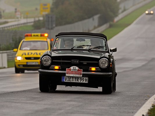 Itt tényleg elemükben voltak a sportfutóműves kocsik. Egy Triumph Spitfire úgy megy el, mintha száraz lenne a pálya. Később kiderül, 2,5 literes, körülbelül 140 lóerős, hathengeres motor és versenyfutómű magyarázza a furcsaságot. Anna szól, hogy kéne már nyomni, mert lekéssük az időnket. Még jobban tornázom a kormánnyal, másodikban és harmadikban ordít a motor. Kezdem kapizsgálni, miért tolták annyira a többiek. Egy TR6-os Triumph a biztonsági korlátra rásimulva várja a segítséget. Pocsék lehet nekik, de minimális horzsolásokkal megúszták.