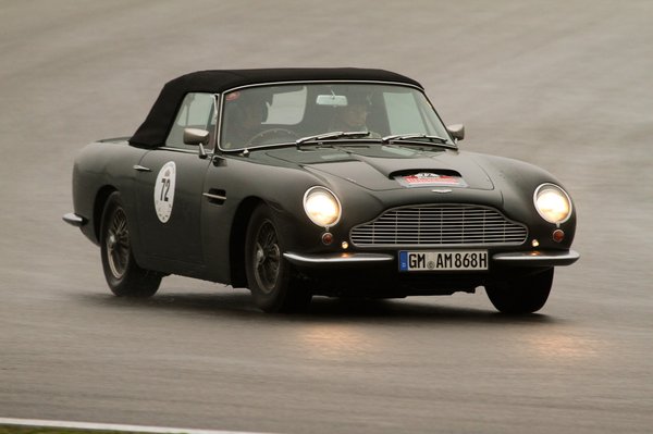 Ami először feltűnt, hogy egy Aston Martin DB6 Volante irgalmatlan tempóval és ájulásosan szép hanggal húzott el mellettünk. Hűha, micsoda vaddisznók vannak a mezőnyben, hogy lehet így bánni egy koronaékszerrel?! Mi is elkezdtük nyomni, de hamar kiderült, az aszfalt nagyon csúszós, Nusi már rakta is formás seggét csupa olyan irányba, ami kizárólag csak lassított. Tojástáncot jártunk, hirtelen salétromot, ammóniát és ciánt izzadtam, mert ha megperdülünk vagy korlátnak csapódunk, oda az egész verseny.