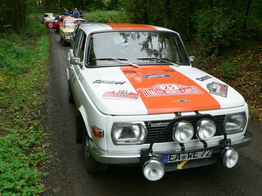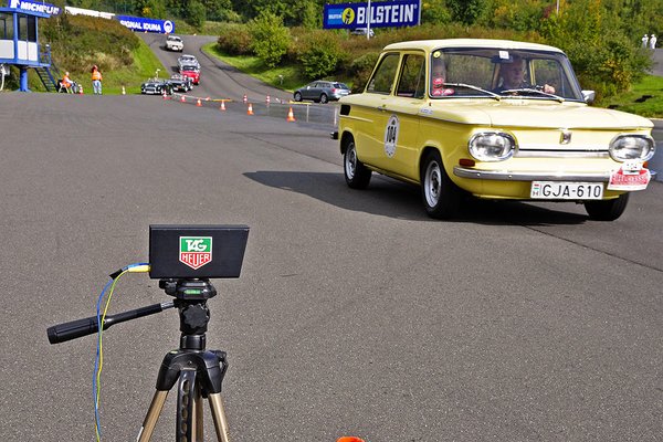 Biersdorf am See az ebéd színhelye. A meseszép panorámás hotel éttermében együtt étkezünk a BMW 02 turbós Arne és Patrick Stumppékkal. Ők azok, akiket szeretnénk megszorongatni, de nagyon ügyesek. A 19 éves srác teli becsvággyal, a papa meg nagy rutinnal hozza a jó időket. Mondják, hogy szikrázik a levegő a kocsiban, néha annyira veszekednek. Ezek szerint komolyan veszik a versenyzést. A parkolóban állították fel a nyolcadik mérést. Szépen belátható dupla, no problem. Áthajtós slagra indul, majd két fotocella mér. 80 m 11 mp, utána 100 m 27 mp-es érkezéssel. Esküdni mertem volna, hogy jó lett, de a slagon valahogy mindig elmegy az eredmény: 43. hely, 64 pont. Bakker. Az NSU TTS 21-gyel lesz 8., Fialáék 10. (26), a Jürgenek tizenharmadikok 32-vel. Stumppék sem brillíroznak 46 pontjukkal (26.). De legalább kisüt a nap! Irány Luxemburg.