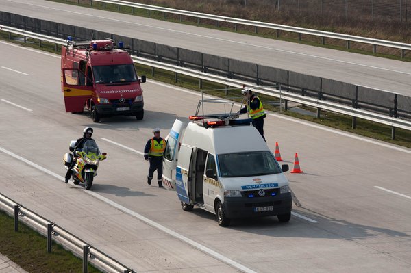 Ezzel még nem ért véget a műsor, bár kevésbé látványos rész következett. A piros emberek befejezték a melót, majd feltűnt egy rendőr, aki – helyszínelt. Mivel személyi sérüléssel és halállal végződő baleset történt, ez szintén kötelező része a gyakorlatnak. Aztán még kármentesítés következik, roncselszállítás, takarítás, berendezések elpakolása, satöbbi.