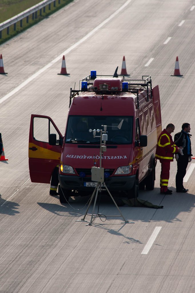 A gyors távozás nem megfutamodás volt, ilyenkor a mentőegységek informálása a fő cél. Időközben a riasztásra megérkezik egy mentőmotor is – pont a közelben járt. A rendőrök ezalatt lezárják az utat, és a mentőmotor sem mehet közel a helyszínhez – majd megérkezik a katasztrófavédelem első egysége. Ők légzőkészüléket viselnek, és gázanalizátorral járkálnak mindenfelé, miközben Darth Vader-hangon lélegeznek. Nem telik el öt-hat perc, és megjön a mentőautó is.