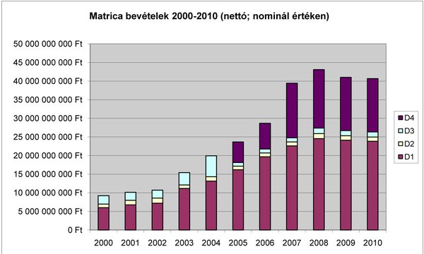 Hatforintos tarifával számolva ekkora távon már nagyobb a kilométerdíj, mint a matrica ára. Viszont jobban járnának, akik csak nagy ritkán utaznak a sztrádán, például Budapestről havonta kétszer látogatják meg Győrben a nagymamát. Ha valóban lehetővé teszik, hogy a közlekedők maguk döntsenek a kilométerdíj és az e-matrica között, sokan lesznek, akik még spórolhatnak is. Más kérdés, hogy mindez visszaüthet, amikor majd megszűnik a matrica, és csak a kilométerdíj marad. Noha még sok minden képlékeny az ügyben, a kormány biztos abban, hogy már a vegyes rendszertől is jókora pluszbevétel várható. A fejlesztési tárcánál úgy vélik, az előzetes becslések szerint a kilométerdíj bevezetését követő első teljes évben mintegy 45 milliárd forint többletbevétellel lehet számolni. „A várható mintegy 90 milliárd forintos összes útdíjbevétel a személygépkocsikra számított 30 milliárdnyi e-matricás és a tehergépjárművekre kalkulált 70 milliárdnyi elektronikus útdíjas bevételből áll össze az üzemeltetési, ellenőrzési költségek levonása után."