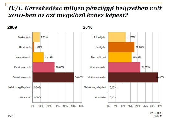 A többség szerint nem jó dolog ma autót árulni, sőt, legalább a fele vállalkozás úgy látja, hogy még a 2009-eshez képest is rosszabb volt az anyagi helyzetük 2010-ben. Igaz, egy évvel korábban még többen voltak, akik így érezték, viszont most már 28 százaléknak kicsivel vagy lényegesen jobb a helyzete. És ez biztató. Annak ellenére is, hogy a 2010-es értékesítés döbbenetesen szerény: személyautóból 42 ezer kelt el, az „újautó-értékesítés” címén forgó 52 ezres számban a mintegy tízezer haszongépjármű szerepel. A visszaesés benne van az európai TOP 3-ban, Görögországgal és Németországgal karöltve. (Az előbbi érthető, a németeknél a roncsprémium megszűnése okozta a százalékban kifejezve magas buktát, de ott így is közel hárommillió autó kelt el.)