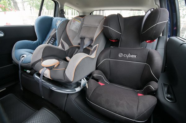 Meglepően jól megállnak a sík hátsó ülésen a gyerekülések, csak az ajtókat nem lehetett becsukni.