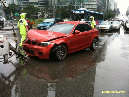 Az első törés, amiről hírt kaptunk, a legelső Dél-Koreába szállított példányt érte: hétköznapi ráfutásos balesetnek tűnik. A második 1-es M Coupét Lengyelországban zúzták le - itt feltehetően megcsúszott a BMW fara, ami nem csoda 340 lóerő és vizes út kombinációja esetén.