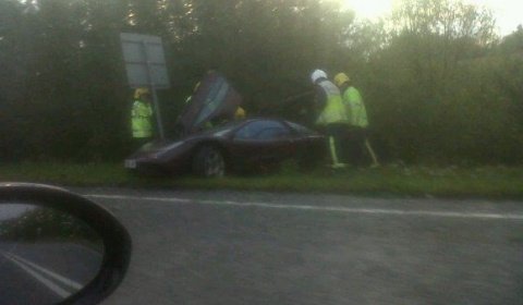 Csütörtök este fél nyolc körül forgatta meg Rowan Atkinson a McLaren F1-esét A605-ös országúton, majd egy villanyoszlop és egy fa érintésével az árokban landolt, ahol kigyulladt a McLaren.
