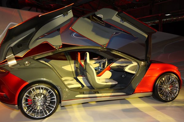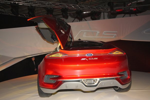 Az Evosról annyit lehet tudni, hogy ez a Ford első globális formavonulatának bemutatása, tehát most már arra sem veszik a fáradságot, hogy legalább kontinensenként igazodjanak az emberek ízléséhez. Ez lesz belőle: egy Mustangba oltott Aston Martin-Jaguar keverék, hiszen olyan cuccokra kell utalni, amit a világon mindenki ikonként ismer. Nekem speciel a részletei tetszenek, de az autó orra és oldala kupénak aránytalanul magas, amit azzal próbáltak elsikálni, hogy a küszöböt ezüst színűre csinálták. Szerencsére az ebédhez kirakták az autó agyagmodelljét is, rendes sárga színben, így, amikor nincs emelvényen, egészen hétköznapi. Mint minden Ford.