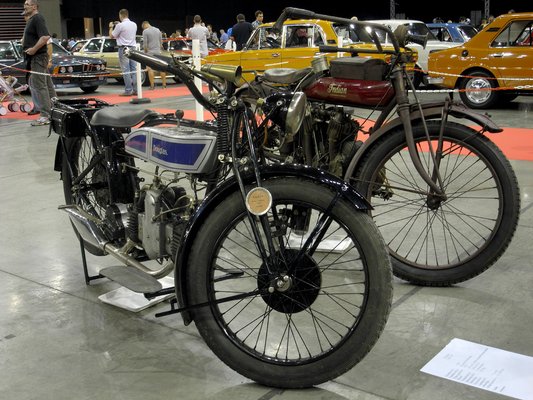 Továbbra is a tízes-húszas évek, a világ első bokszere (bár nem hinném, hogy amikor még észak-déli irányban építették be, így hívták), a Douglas EW350 veti vállát az 1914-es Indian Hendee Specialnek.