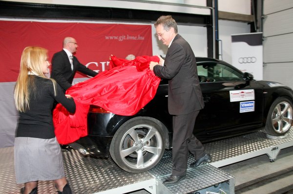 Gondolom, az sem véletlen, hogy az Audi Hungaria személyügyi igazgatója adta át az autót. Az Audi autógyára bővül, ahová rengeteg mérnök kell, nem árt, ha a diákok megszokják az Audik szagát. Az pedig külön gesztus, hogy nem egy A3-ast adtak, hanem egy csodálatos kupét 3,2-es, V6-os motorral és Tiptronic váltóval.