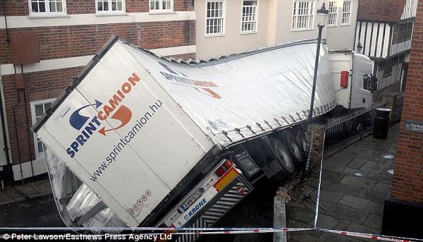 Oxford Fenning adószakértő, aki 1986 óta birtokolja a blokkolt épületek egyikét elmondta, hogy ez a tizenkettedik ilyen baleset a helyszínen. Akadt már itt el a hadsereg kamionja a haditengerészet egyik hajójával, és a Heathrow-Norwich expressz buszjárat is.