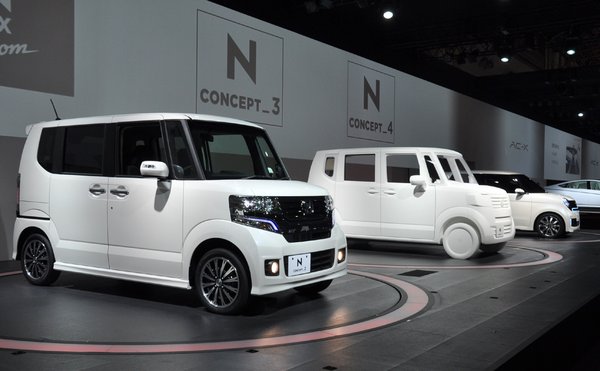 Meg ott volt az N-es széria is. Három kisfurgon, közülük az egyik (a 2-es), az N-Box nevű rövidesen megvehető lesz. Szerény külső méretekhez képest óriási belső tér, részben a középen, laposan elhelyezett tanknak köszönhetően.