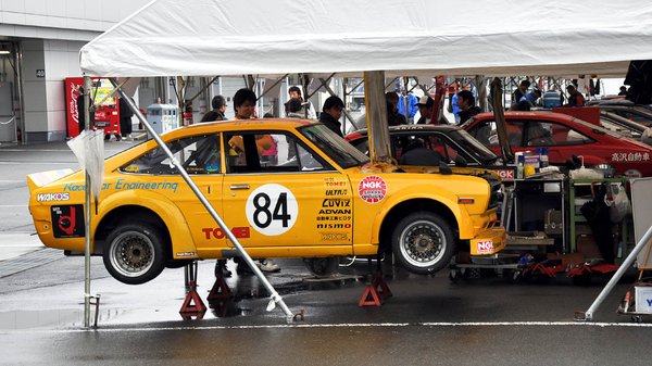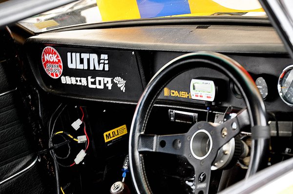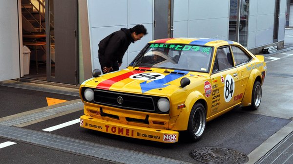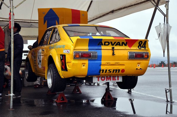 Mondjuk, túlzás azt mondani, hogy konkrétan ez, hiszen az eredeti kocsi évtizedek gyilkos használata alatt részben elfogyott – tudják, ez már csak így szokott lenni olyan versenygépeknél, amelyeket sokáig gyűrnek. Ez az autó részben az eredeti Hirota-Sunny alkatrészeinek felhasználásával készült valamikor a nyolcvanas évek elején, s hajszálpontosan olyan, amilyen fénykorában volt. Amennyiben egyáltalán lehet a fénykoráról úgy beszélni, mint valami múlt időben történt dologról. A kocsi, a tulajdonos-szerelő, s annak családja ugyanis ma is a japán oldie-versenyszcéna egyik legaktívabb csapatát adja.