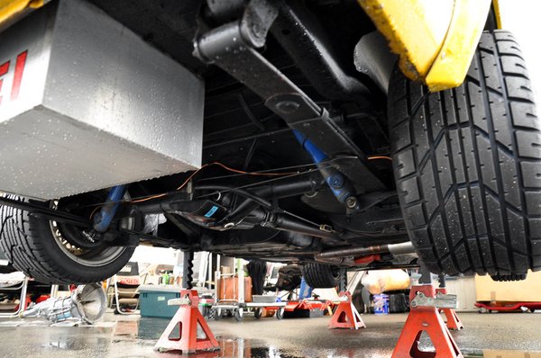 Az egyik leányzó nekiállt magyarázni, hogy ez egy családi csapat, a kocsit a papájuk szereli, aki már a cégalapítóval, a legendás Szuzuki Szeicsivel együtt dolgozott. Hogy milyen cég alapítójával? Hát a Tomeiével. Aha, szóval legendás is, meg Tomei is. Még a szemem előtt voltak az imént látott turbók, leömlők, no meg a nyolcmillió forintos, Tomei-tuningos RB26-motor, Karotta is ejtett a standnál néhány szót erről a márkáról. De sehogy nem tudtam összecsúsztatni azt a képet ezzel a kis sárga pléhdobozzal, ami előttem állt, bármilyen lelkesek is voltak a csajok.