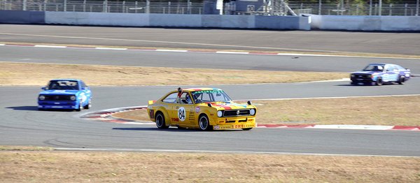 Aztán jött a historic futam. És akárhányszor felbukkant előttem a sikánban a sárga autó, valahogy mindig előzött vele a pilóta. De őt sosem senki. Az apró, sárga villám üvöltve bőgött el előttem körről-körre, nem mondom, a hangja, a tempója elég korrekt volt. És tényleg a szemem láttára nyomta le nagyjából az összes Hakosukát, ami a pályán körözött. Hm.