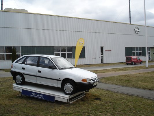 A bennfentes sztorik hangulatától elvarázsolva érkeztem másnap fél tizenegykor a gyárba, ahol Hofmann igazgató rigorózus szelleme még mindig érezhető, habár most már csak vendégként jár itt. Az oszlopok köré friss fehér murvát szórtak, a Hoffman pedantériáján edződött Fodor Zsolt pedig még most is önkéntelenül lehajolt egy lehullott csavarért, ahogy végigsétáltunk a – ma már – motorgyár futószalagja mellett. De előtte még megnéztük a kapunál kiállított fehér Astrát, ez a kocsi az előszériás darabok egyike. Habár húsz éve szabad téren áll, jól tartja magát, a gyári legenda szerint csak azért kell ötévente levenni a helyéről, hogy az alatta levő, pódiumként szolgáló kazánlemezt újrafessék.