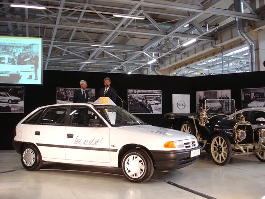 Aztán jöttek a beszédek, közben a vetítőn pörögtek a régi képek. Astra rendőrautó – már egy darab sincsen belőle. Astra kupás versenyautó – hejj, de jó volt kipróbálni a Hungaroringen. De az igazán megható pillanat mégis az volt, amikor a szentgotthárdi Opel gyár első igazgatója Ernst A. Hofmann lépett a színpadra. Sokan emlékeztek még rá, hiszen a húsz évvel ezelőtti csapatból több, mint százhatvanan még ma is Gotthárdon dolgoznak. Együtt figyelték a húsz évvel ezelőtti Híradó riportot, amelyben „Ernst A. Hofmann igazgató bejelentette, hogy az 1.4-es motorral szerelt Astra alapára 998.500 forint”.  Antall József miniszterelnök pedig az Opel úttörő szerepét méltatva arról beszélt húsz éves felvételen, hogy az „Opel és a General Motors a legkorszerűbb ipari kultúrát hozta el Magyarországra”.