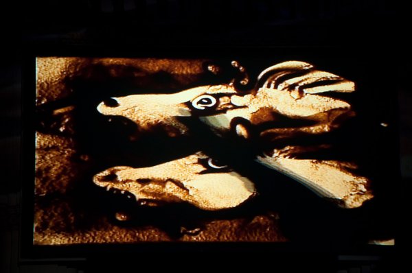 Egy fogás, egy műsorszám, ez a ritmus. Nekem újdonság a homokos bácsi performansza, akinek spontánnak ható homokba turkált rajzművészetét csodáljuk fergeteges öt percben, de a technósított népdaltól a modern táncig mindent megkapunk az Iparművészeti Múzeumban rendezett vacsorán. Mindent, aminek érintőlegesen köze van a magyar folklórhoz, de olyan tálalásban, hogy ne feküdje meg a nagyvilágból idecsődített közönség gyomrát - hasonlóan a felszolgált göngyölt májkrémhez, amin Pali bácsi igencsak meglepődne, ha így lökné elé Erzsi néni a vacsoradeszkán.