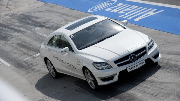 Tréleren hozták a kis flottát, pár nappal ezelőtt, és az első áldozat már meg is volt: az egyik CLS-szel kicsúsztak, az most szervizben van. Még szerencse, hogy előrelátóan terveztek, így az öt felbérelt tesztpilótának még mindig van hat autója, hogy megautóztassa az újságírókat a ringen.