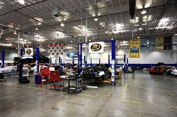 Egy csarnokkal arrébb már fotózhattunk. Errefelé már az új Shelby Mustangok készültek, egészen felhasználóbarát konstrukciókkal. Ha ugyanis a vásárló akar például egy új GT350-et, akkor megrendeli egy Ford kereskedésben, a cég leszállítja a Shelby-hez, ők átépítik, a bontott-de-mégis-új alkatrészeket pedig eladják egy harmadik cégnek, így tartva alacsonyan a vételárat. Létezik olyan megoldás is, hogy a megrendelő az utcáról esik be egy használt Mustanggal, ami ha megüti a Shelby-től elvárt szintet, akkor szintén megkaphatja a tuningcsomagok valamelyikét.