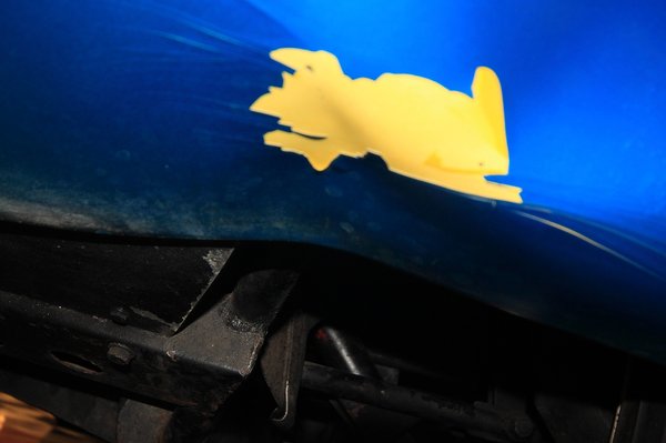 Az első kötényt nézve egy sárga foltot vettem észre a kék autón. Még most is csak mosolyogva tudok visszagondolni, ahogy Pittsenbarger cinkos vigyorral az arcán elmeséli, hogy a kék bizony nem az eredeti színe. Carroll Shelby, azon kívül, hogy megannyi győzelmet aratott versenyzőként, refinált üzletember is volt. Mikor elkészült az első Cobra, és járta vele kiállításokat, rendszeresen átfényezte az autót, hogy a befektetők azt lássák, nem csak egy van belőle. A hatvanas években a FIA-homologizácóhoz szükséges száz darab Cobra legyártása is csak papíron történt meg, az alvázszámoknál Shelby gyakran nem egyesével, hanem tucatjával lépett. Az első és az utolsó elkészült, de a köztük lévő kilvencvennyolc autónak csak a töredéke épült meg.