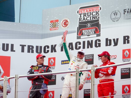 Kicsit tovább barangolva a versenykamionok, a körülöttük gondosan előkészített pót-motorblokkok, pót-féktárcsák és az alkatrészbázis közepén mosogató feleségek közt, feltűnik még valami. Azt még úgy, ahogy megértem, hogy ez nem a Forma-1, és nem is a túraautó-bajnokság, ezért előfordul, hogy egy gyártó, jelen esetben a török piacot rendkívül fontosnak tartó Renault a névadója egy futamnak, azt azonban már kevésbé, hogy miért kizárólag MAN-eket és Renault-kat látni a bokszutcában. Az utóbbi években ez a két márka osztja ki egymás közt az egyéni és a csapatbajnoki címeket, ami, valljuk be, nem túl izgalmas azoknak, akik mondjuk szeretnék látni, ahogy a felsoroltakon kívül néha Volvók és Mercedesek is csépelik egymást a kanyarokban.